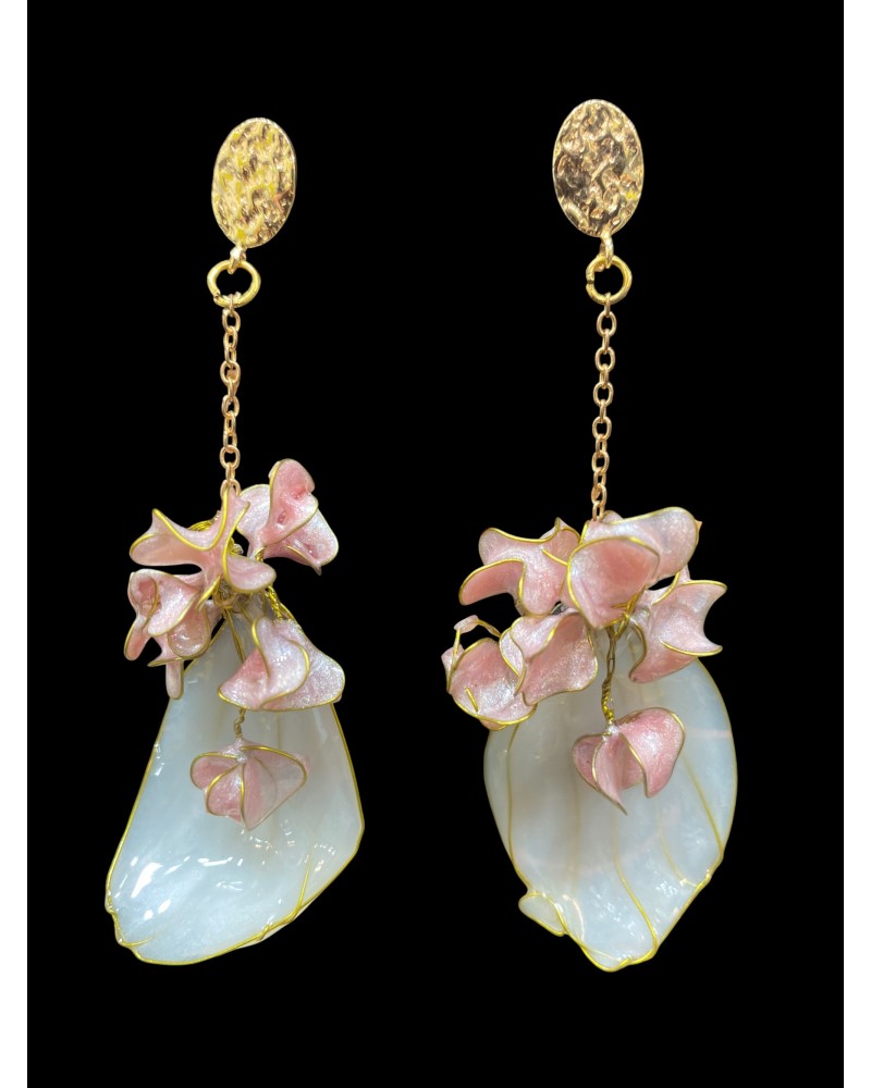 Los pendientes Fleur, con su combinación de colores blanco y rosa perlado, son la combinación perfecta para un look de delicadeza audaz.